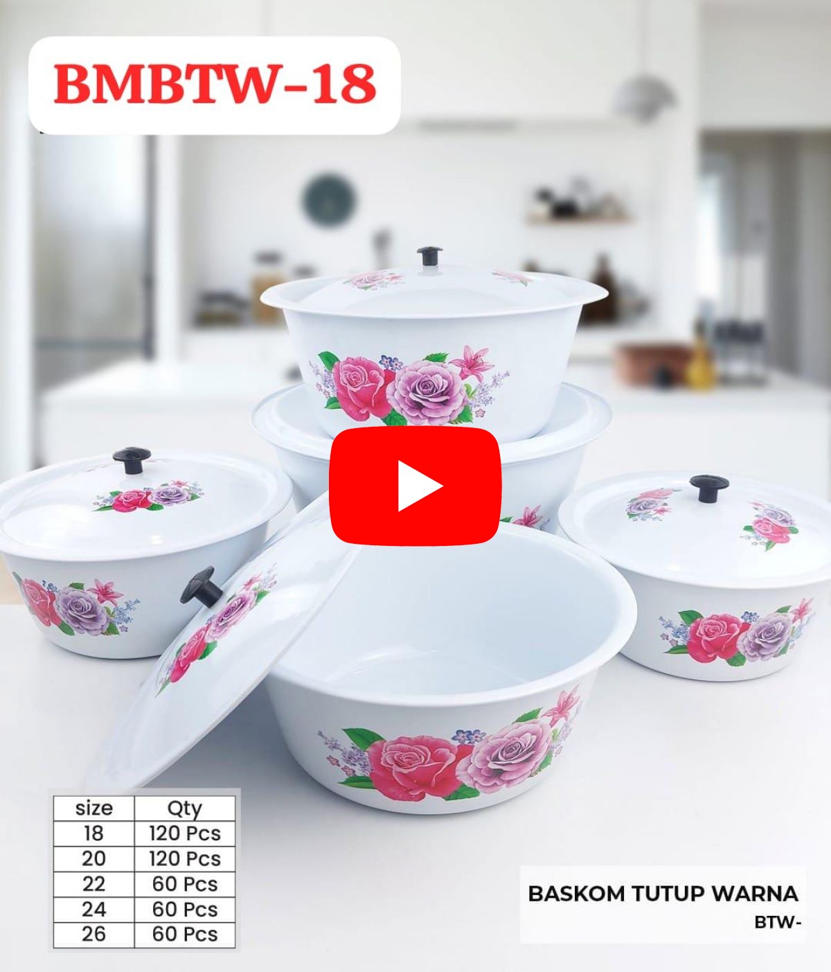 BASKOM TUTUP WARNA BMBTW-18 SIZE 18 CM ISI 10 LUSIN