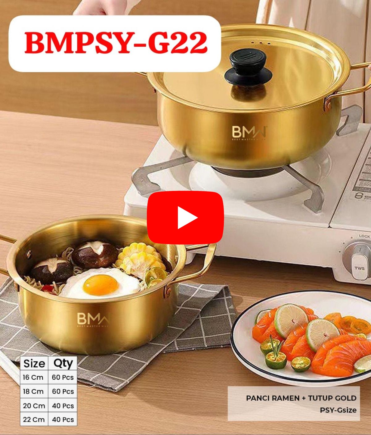PANCI RAMEN + TUTUP GOLD BMPSY-G22 SIZE 22 ISI 40 PCS