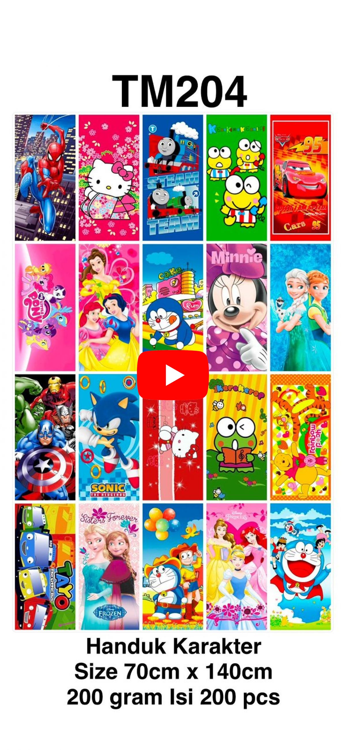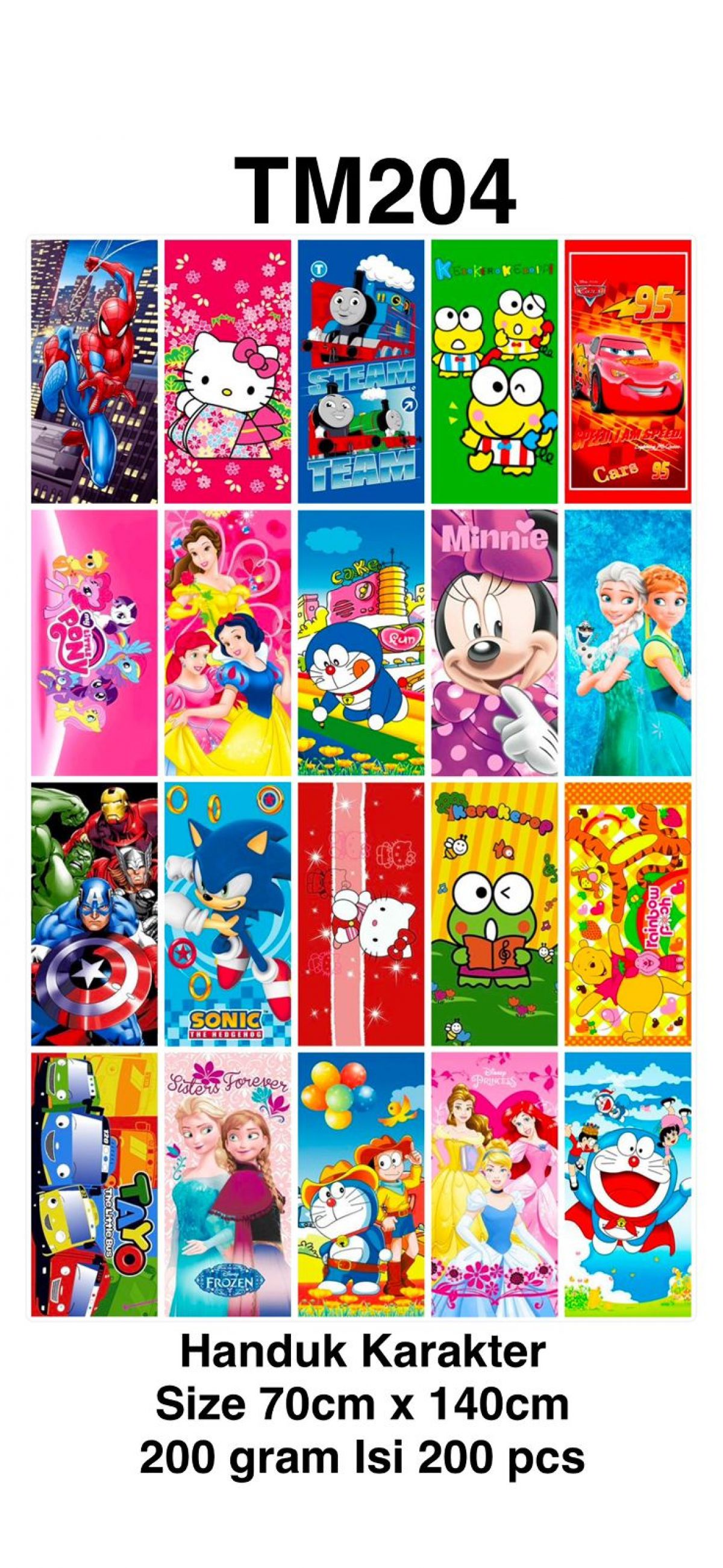 HANDUK KARAKTER TM204 SIZE 70CM*140CM GRAMASI 200 GR ISI 200 PCS