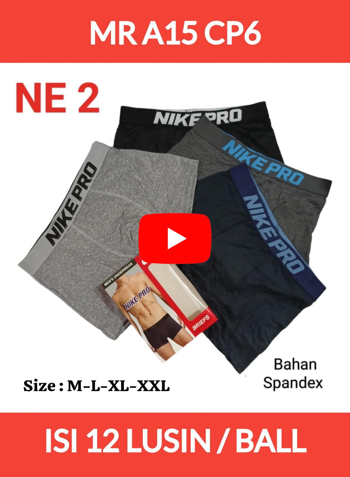 BOXER PRIA MR A15 CP6 BAHAN SPANDEK SIZE M-L-XL-XXL ISI 12 LUSIN