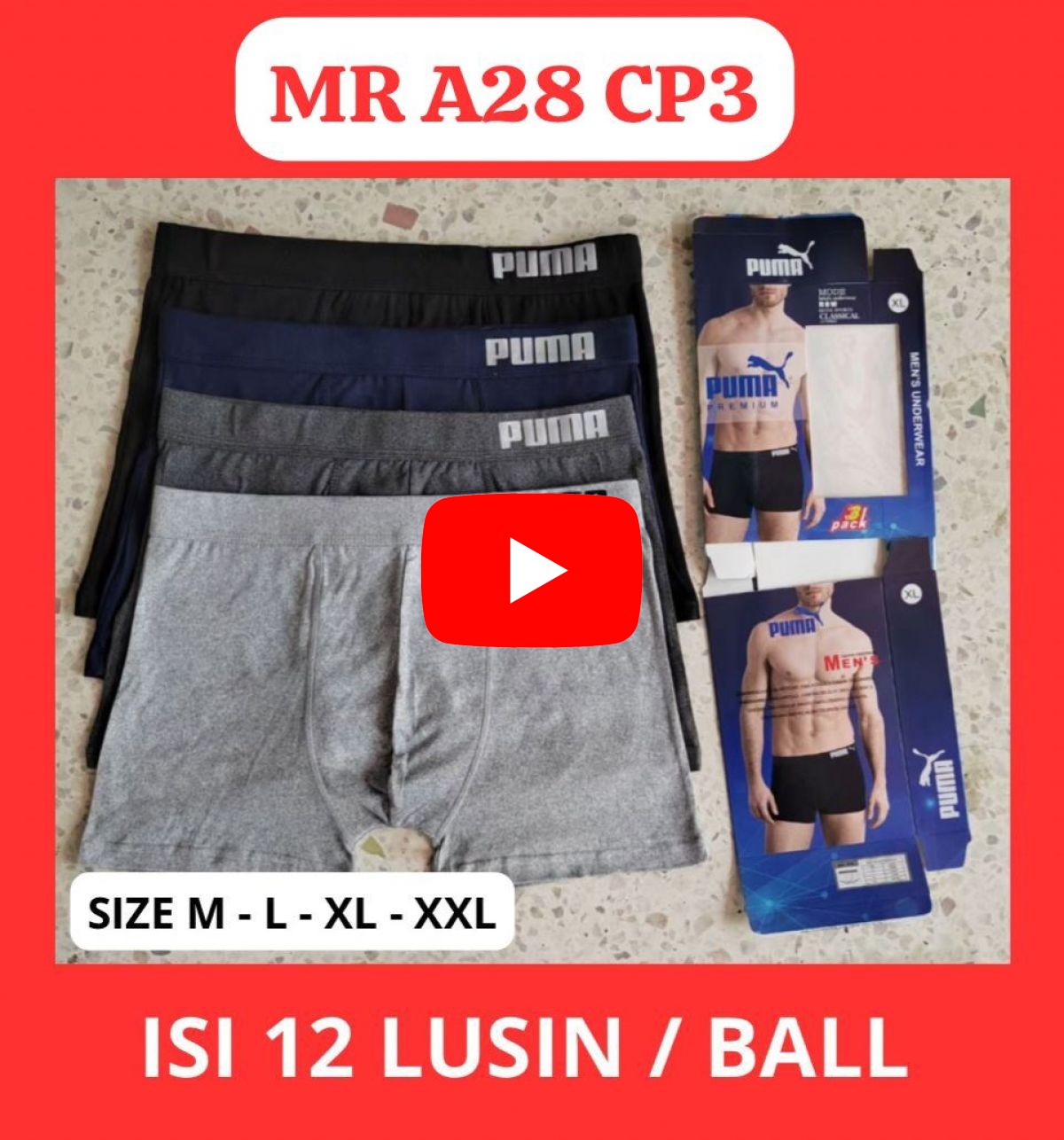 BOXER MR A28 CP3 SIZE M - L - XL - XXL ISI 12 LUSIN
