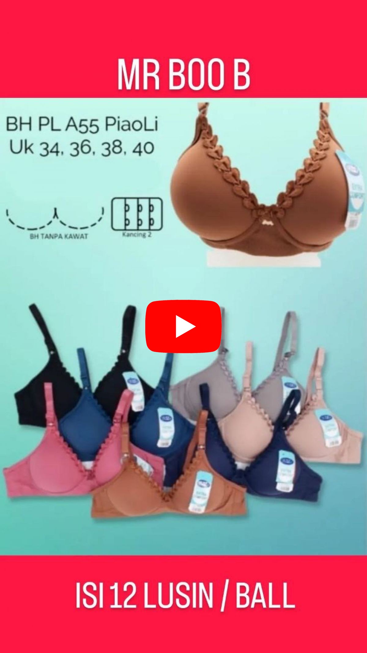 BH TANPA KAWAT MR B00 B SIZE 34 - 40 ISI 12 LUSIN