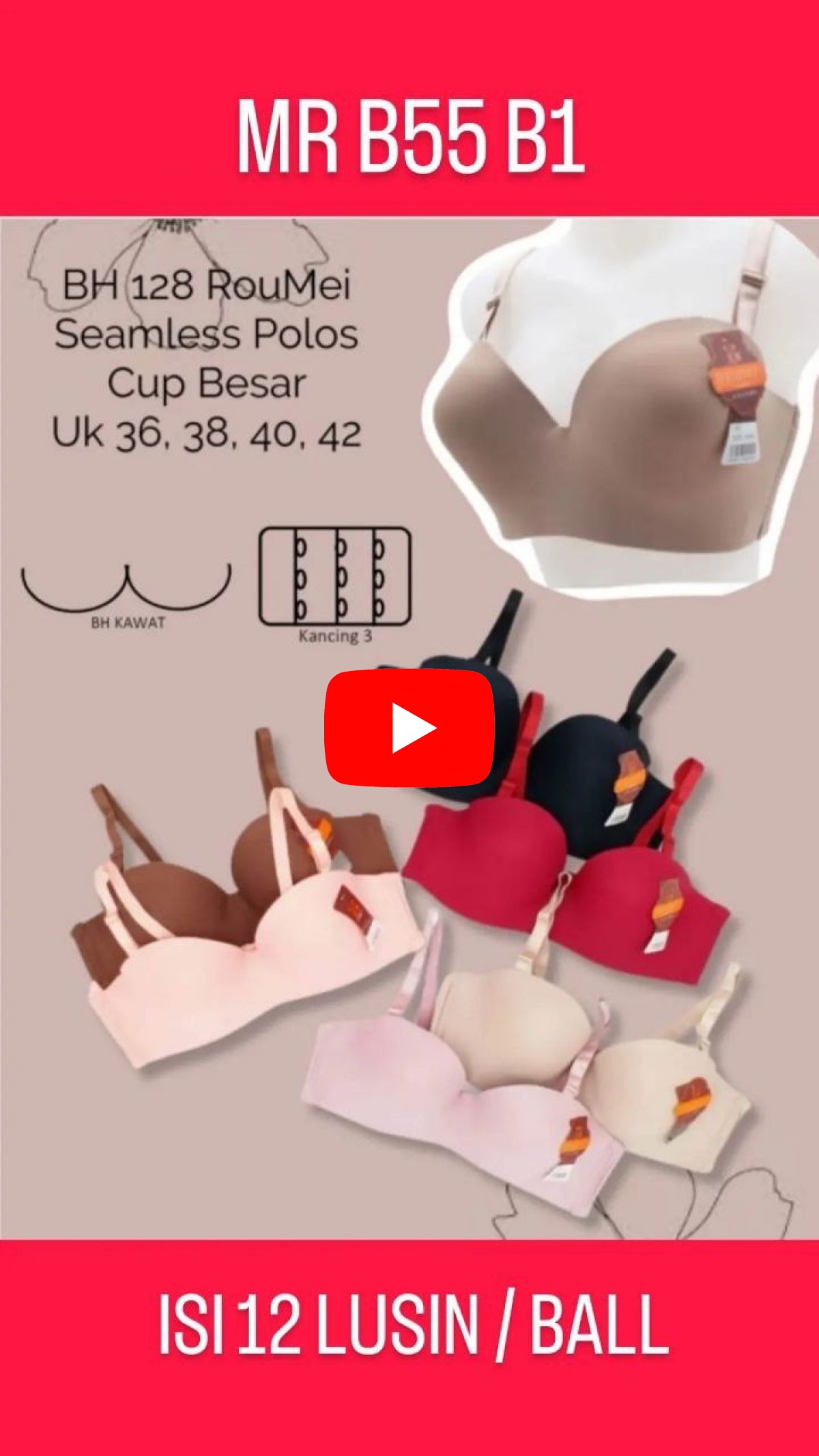 BH SEAMLESS POLOS CUP BESAR MR B55 B1 SIZE 36 - 42 ISI 12 LUSIN