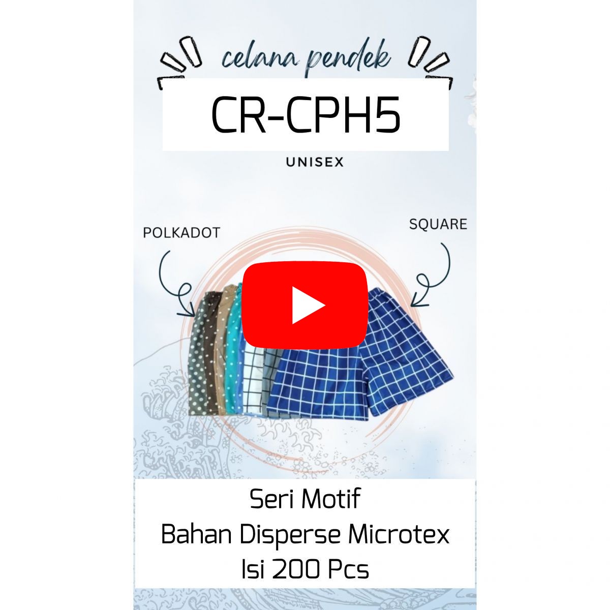 CELANA PENDEK CR-CPH5 UNISEX BAHAN DISPERSE MICROTEX ISI 200 PCS