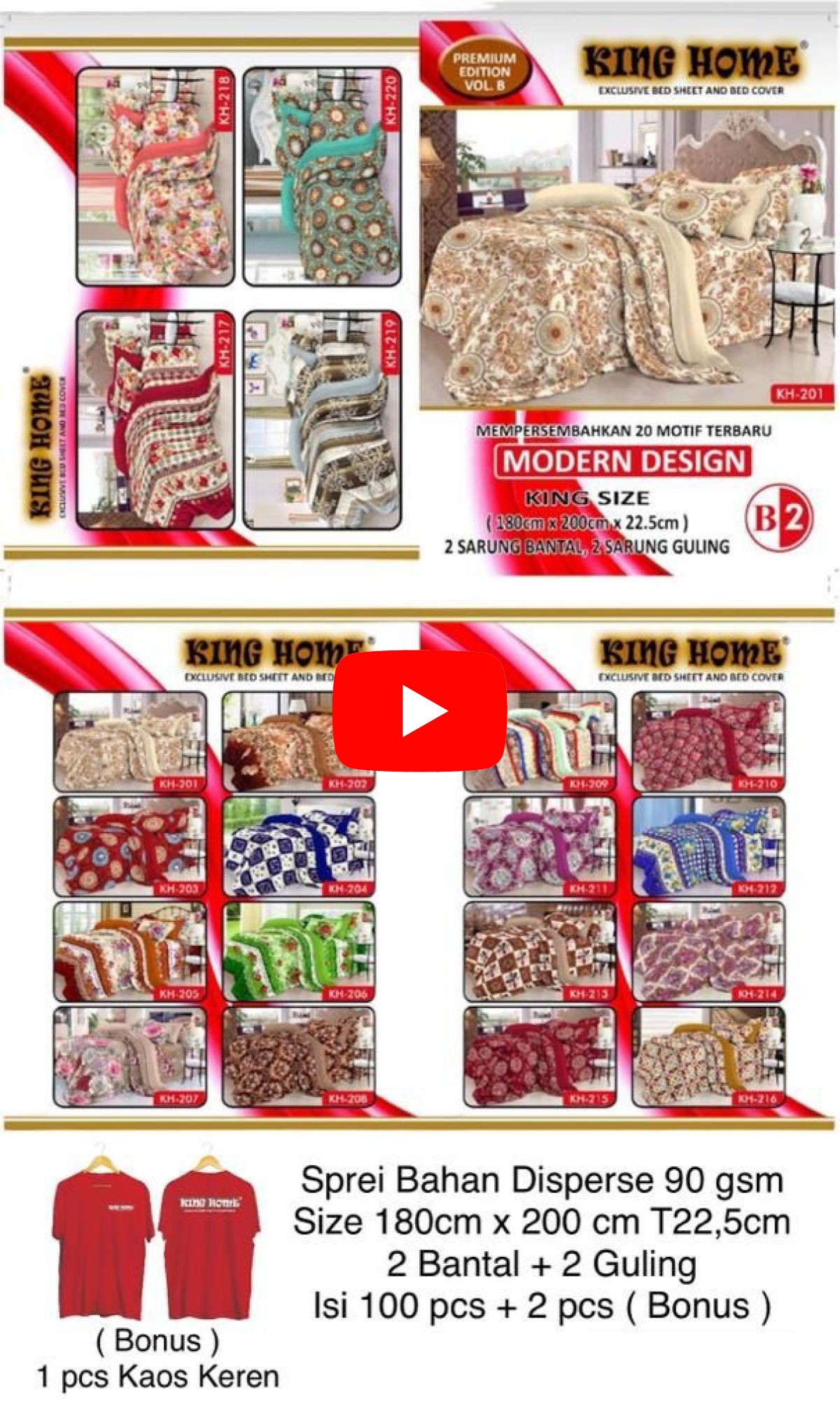 SPREI KING HOME KHB5 MOTIF B2 SIZE 180CM * 200CM T22.5CM ISI 100 PCS (BONUS 2 PCS)