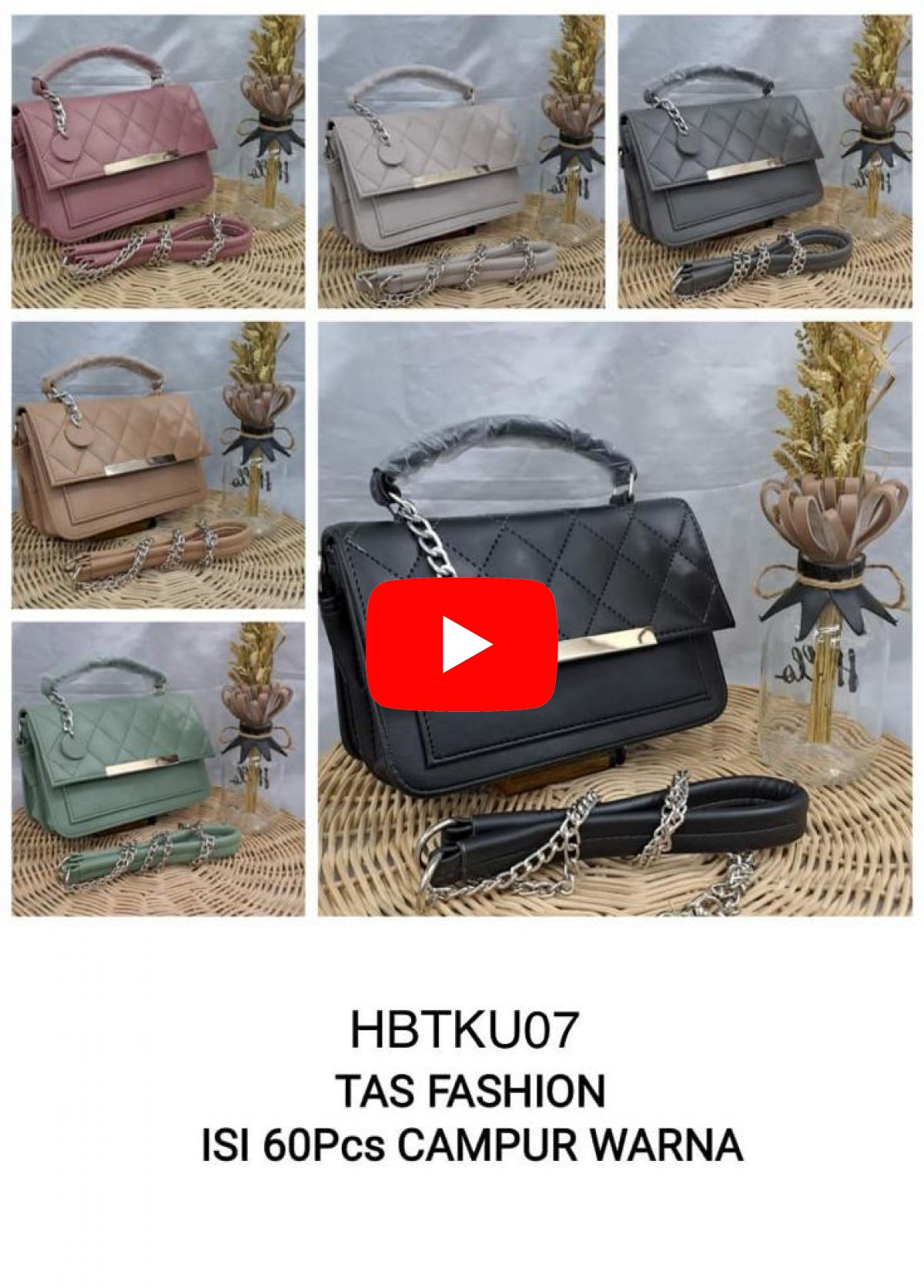 TAS FASHION HBTKU07 SIZE 20CM * 14CM * 15CM ISI 60 PCS ( CAMPUR WARNA ) BAHAN SINTETIS & 2 RUANG